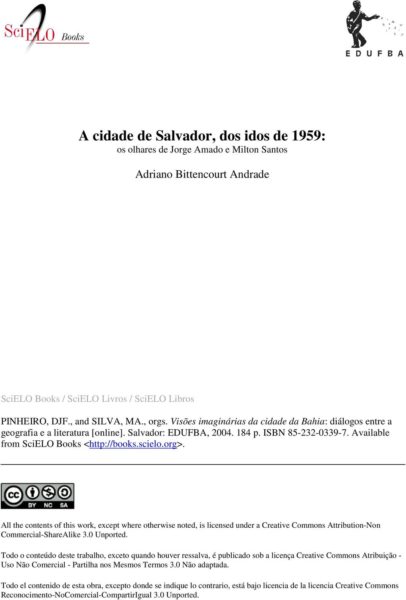 7 ● A cidade de Salvador, dos idos de 1959: os olhares de Jorge Amado e Milton Santos, de Adriano Bittencourt Andrade (2004)