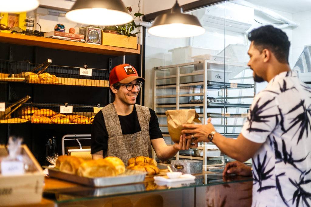 The decor, retro and minimalist, is another attraction and gathers objects from Maria’s and Davi’s families, in addition to memories from places the couple has traveled to. The main room has a home atmosphere and houses the counter where orders are made and an all-glass wall from where it is possible to see the preparation of the bread.