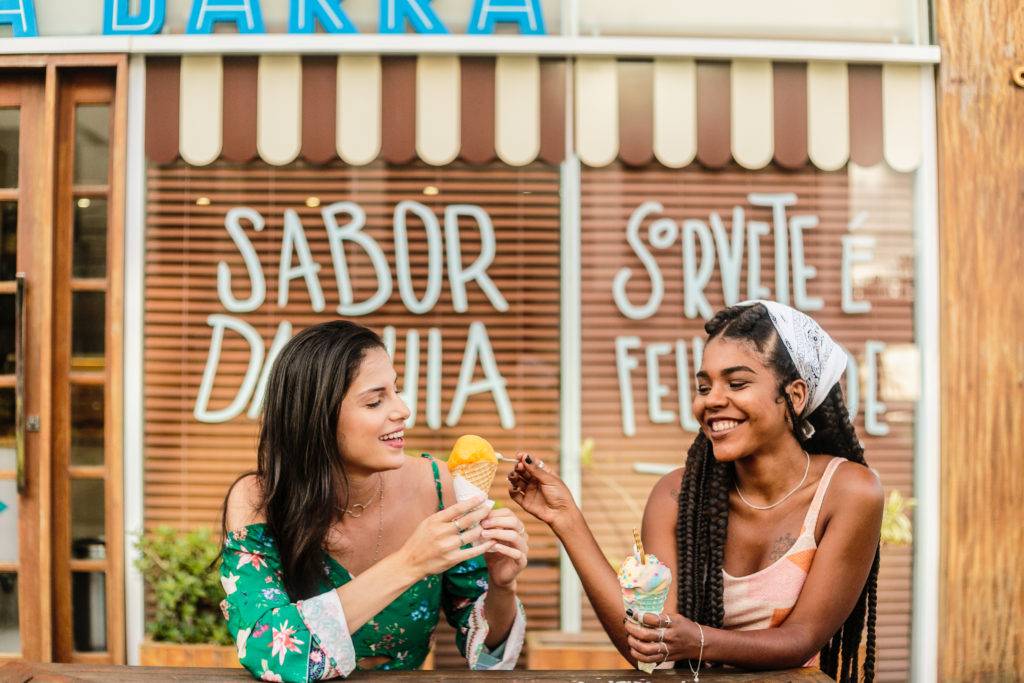 Cajá, mango, cupuaçu, coco verde, mangaba, fresa de Chapada Diamantina y una docena de otras materias primas llaman la atención de quien llega. Los helados de frutas no llevan leche. ¿Y resulta cremoso? ¡Síí, y tanto! Hechos a base de agua, utilizando la técnica tradicional de la casa, ellos presentan una textura que cautiva a cualquier cliente.