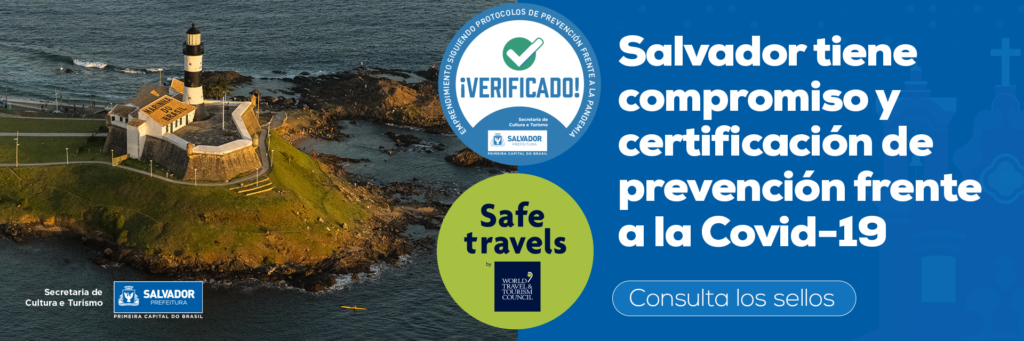 En todo el mundo, el sector turístico se ha movilizado para adoptar medidas que eviten la propagación de la Covid-19. Estas recomendaciones están en consonancia con las directrices del sello Safe Travels (Viajes Seguros), creado por el WTTC (World Travel & Tourism Council – Consejo Mundial de Viajes y Turismo), que definió una serie de protocolos, los que deben seguir las empresas, las ciudades y los países para hacer más seguros los viajes mientras no haya inmunización por completo de la población ante el Covid-19. Salvador fue la primera ciudad de Brasil en recibir el sello de Viaje Seguro del WTTC(Safe Travels).