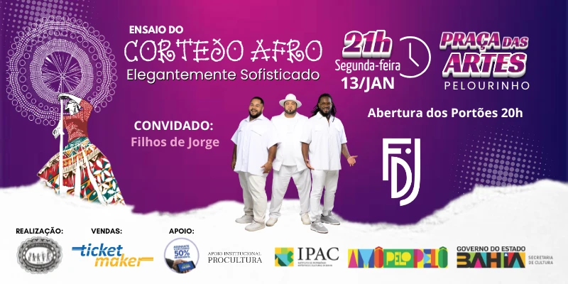 O Cortejo Afro realiza seu ensaio na Praça das Artes, no Pelourinho, trazendo uma mistura de música, dança e cultura afro-brasileira. Uma experiência cultural enriquecedora no coração de Salvador.