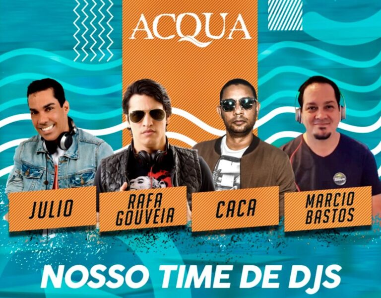 No Acqua é a música eletrônica que toma conta. Os DJs Júlio, Rafa Gouveia, Cacá e Márcio Bastos também se apresentam de quarta a domingo, sempre a partir das 19h, horário de abertura do restaurante.