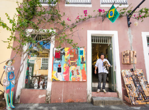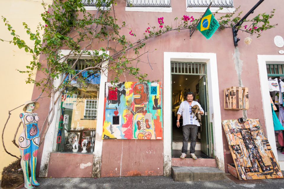 Você já reparou como a Rua das Laranjeiras no Pelourinho é charmosa? Ali estão as lojas de produtos de quase todos os blocos afro, tem o Ateliê da Márcia Ganem, o Projeto Axé e a sede do Olodum. Ali também tem um artista plástico com trabalhos muito interessantes, o Anunciação. Quem curte arte e valoriza peças de artistas locais tem que ir lá! Além de telas com diferentes técnicas, esculturas em diferentes materiais, ele também tem produtos geniais como uns tênis ultracoloridos com tinta que parecem ter saído “de dentro” de uma de suas telas. Por R$ 100,00 (cem reais), você calça algo nada convencional.