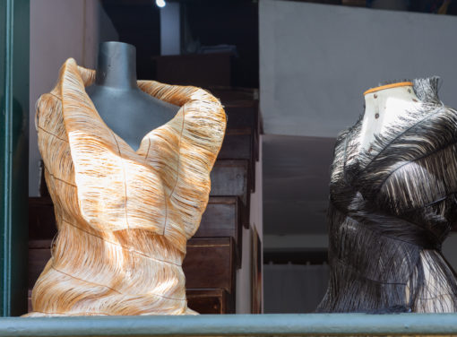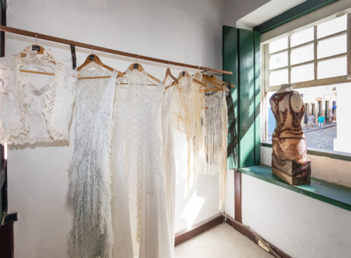 A estilista baiana Márcia Ganem incorpora elementos da cultura brasileira à moda, cruzando diversas texturas, trabalhando relevos e diversas modalidades artesanais, como a trama de nó em pedras, a renda Nhandutí (de origem guaraní) a renda de bilro, a renda Flor da maré (renda baiana, criada por Márcia Ganem e as Rendeiras de Saubara) e o macramê, utilizando como insumo a fibra de poliamida. Em seu atelier, é possível encontrar peças que reúnem um conceito de design que funde técnicas tradicionais de manufatura com o uso de insumos inovadores, utilizando os parâmetros da metodologia Design Dialógico nas Tradições Artesanais, criada pela designer, que investe na relação entre estilistas e comunidades tradicionais, acreditando na dinamização dos mesmos e da própria sociedade, pela construção de moda, baseada no reconhecimento e inclusão de contextos culturais. Num contínuo processo de pesquisa, Márcia une joalheria e artesanato à alta costura, usando materiais sustentáveis, como a fibra de poliamida, patenteada pela sua marca.