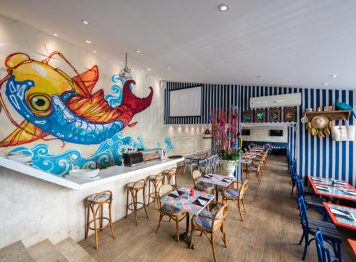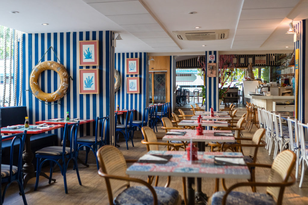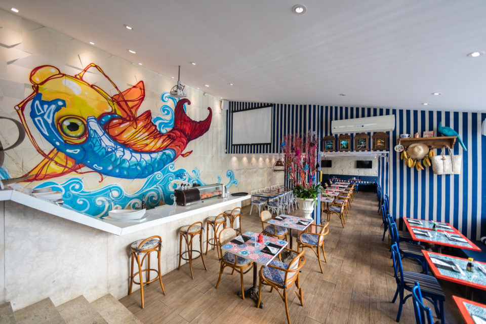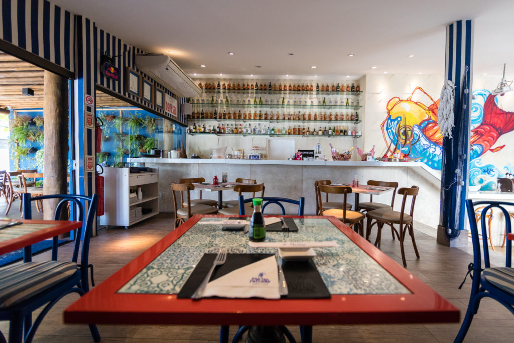O restaurante é especializado em frutos do mar, mas também tem menu japonês e temakis. Também tem a opção de Almoço Executivo. No menu, filé de salmão grelhado ao curry de tangerina com purê de banana da terra e farofa de manjericão, lula recheada com creme de camarão ao molho balsâmico, servido com palmito e batatinhas assadas, polvo com risoto de tangerina, além de temakis e combinados. Também tem alguns pratos com carne.