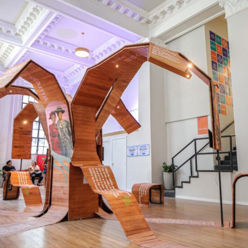 No entorno da árvore foram dispostas telas, bem como ilustrações que representam as diferentes fases da vida da personagem, visando fortalecer os vínculos da imagem de Maria Odília com as lutas atuais, criando laços de identificação.