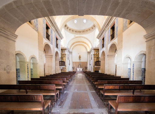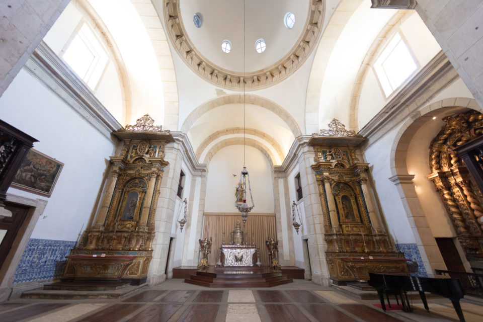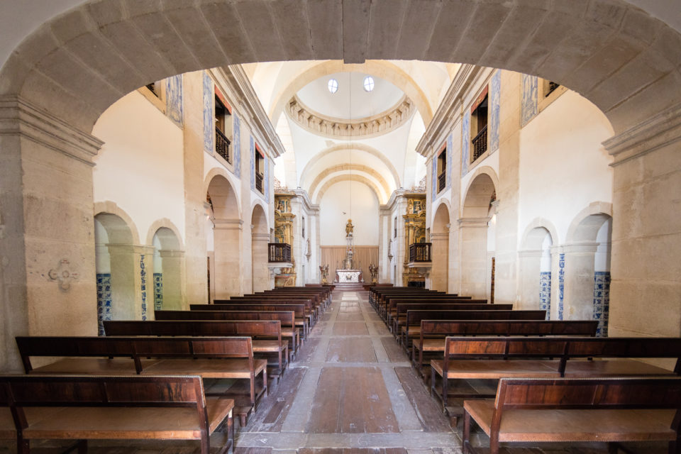 O interior do templo, de nave única, é coberto por abóbadas reforçadas com arcos de pedra de cantaria; o coro fica situado sobre abóbadas de arestas e um arco quase plano – típico na arquitetura seiscentista luso-brasileira; os confessionários foram construídos na própria edificação para permitir que as confissões fossem realizadas sem que os padres saíssem de sua clausura. Além da igreja, sacristia, coro, capela interior, refeitório, sala de capítulo e biblioteca, o conjunto dispõe de 16 salões, 12 salas, 10 celas, longos corredores e galerias e duas escadarias de pedra com painéis de azulejos do século XVII nas paredes.