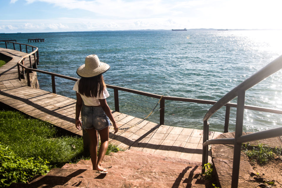 Mar cristalino, vista deslumbrante da Baía de Todos os Santos e obras de arte