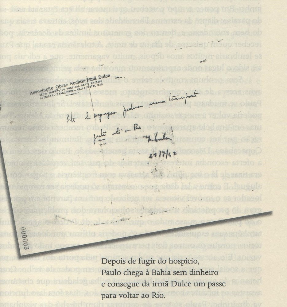 Comme il le dit si bien dans «O Mago», après avoir reçu une portion de soupe à l’institut caritatif Irmã Dulce(Osid), il s’est dirigé vers Dulce et lui a demandé de l’argent pour acheter deux billets de bus pour Rio de Janeiro. La religieuse bahianaise a alors écrit une note contenant cette demande, qu’il a échangée au guichet de la gare routière – qui était localisée à l’époque dans le quartier de “Dois Leões” – contre les deux billets de bus. Il est finalement rentré chez lui. La note marquée du tampon de l’institut et signée le 21 juillet 1967 par l’Ange Bon de Bahia disait: «Ces 2 garçons demandent un transport gratuit pour Rio».