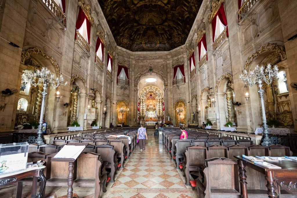 A igreja se destaca por sua construção em estilo barroco, feita toda de pedra de lioz trazida de Portugal, além de teto com ilusão barroca de origem italiana. Durante o dia, a iluminação da igreja é feita naturalmente através das janelas e dos óculos, com destaque para o altar-mor, que é iluminado através da lanterna situada no teto. Já pela noite, são usadas luminárias modernas instaladas recentemente.