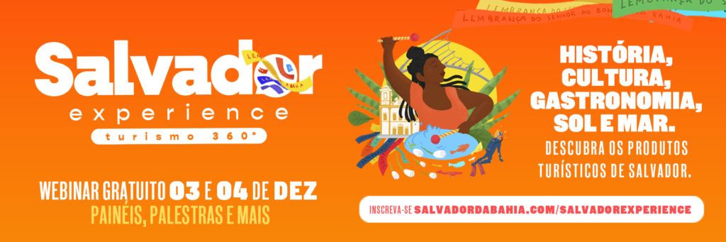 Com isso em mente, a prefeitura municipal de Salvador, através da Secretaria de Cultura e Turismo (SECULT), realizará, nos próximos dias 3 e 4 de dezembro, o Salvador Experience – Turismo 360°, um evento online e gratuito para apresentar os atrativos turísticos da capital baiana para toda a indústria turística do Brasil. Estarão presentes personalidades baianas e nacionais como: Carlinhos Brown, Ricardo Freire do Viaje na Viagem, Vik Muniz, Tereza Paim, Monique Evelle, Antônio Pitta, Paulo Rogério, entre muitos outros.